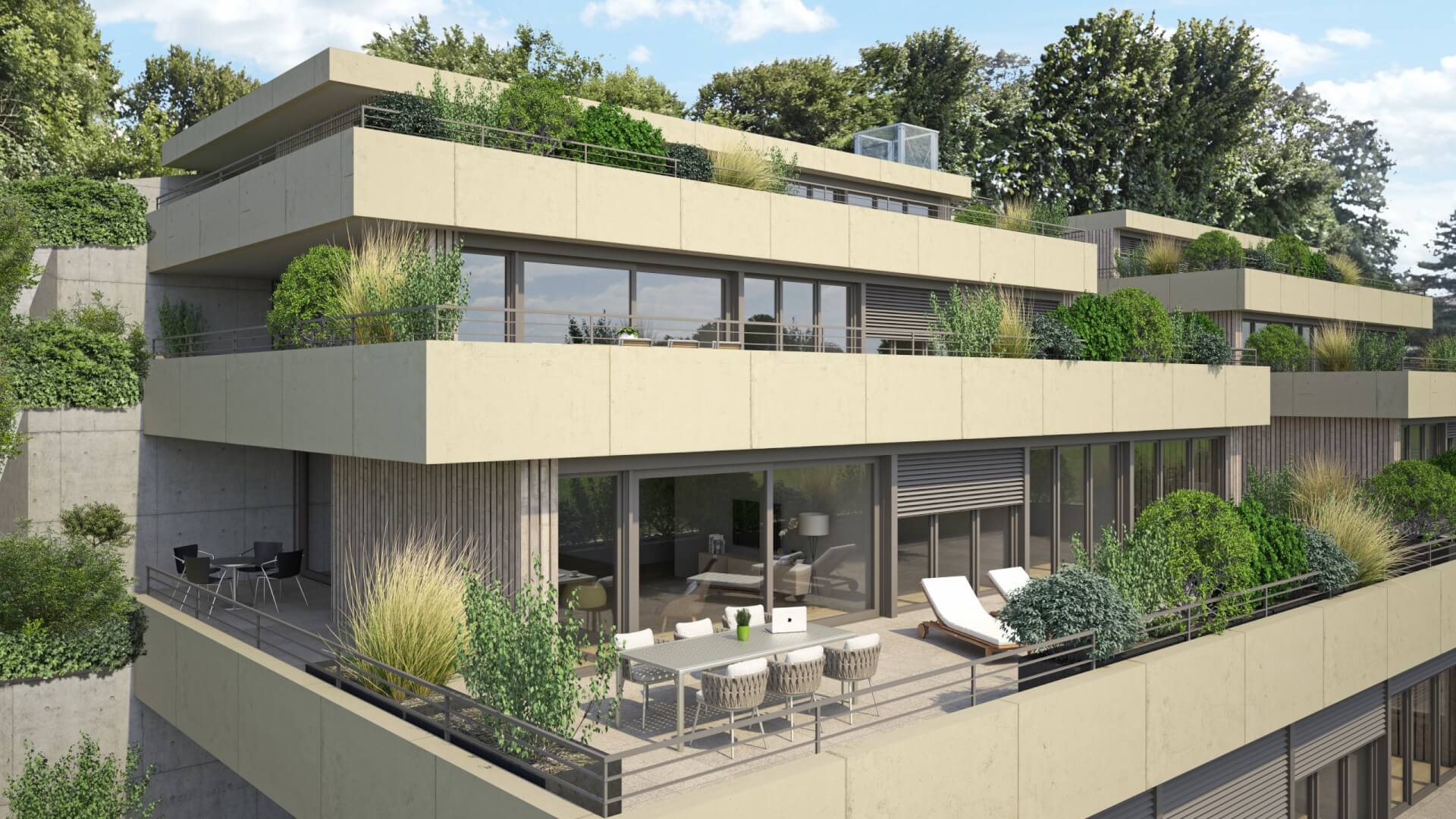 Die traumhafte Hanglage ist die Basis des gesamten Architekturkonzeptes. Von jedem einzelnen Zimmer kann die Sicht auf Aarelandschaft und Alpen uneingeschränkt genossen werden. Grosszügig bemessene und sonnige Terrassen ermöglichen eine uneingeschränkte Teilnahme am begeisternden Naturspiel. Aber die grossartige Lage ist nicht das Einzige, was das Zileten-Projekt so attraktiv macht. Nachhaltigkeit, topmoderner Ausbaustandard, hochwertige Materialisierung und hohe Funktionalität sind ebenso wichtige Bestandteile. Für den Innenausbau des Bades kann zudem aus unterschiedlichen Vorschlägen gemäss Architektenentwürfen gewählt werden.